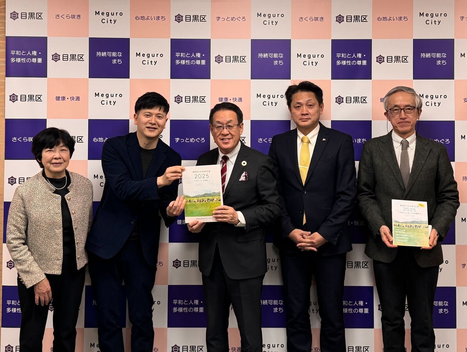 1月30日、難病者の社会参加を考える研究会のメンバー4名(重光、伊東、斉藤、森)が東京都目黒区役所を訪問し、青木英二区長と懇談、『難病者の社会参加白書2025』をお渡ししました。