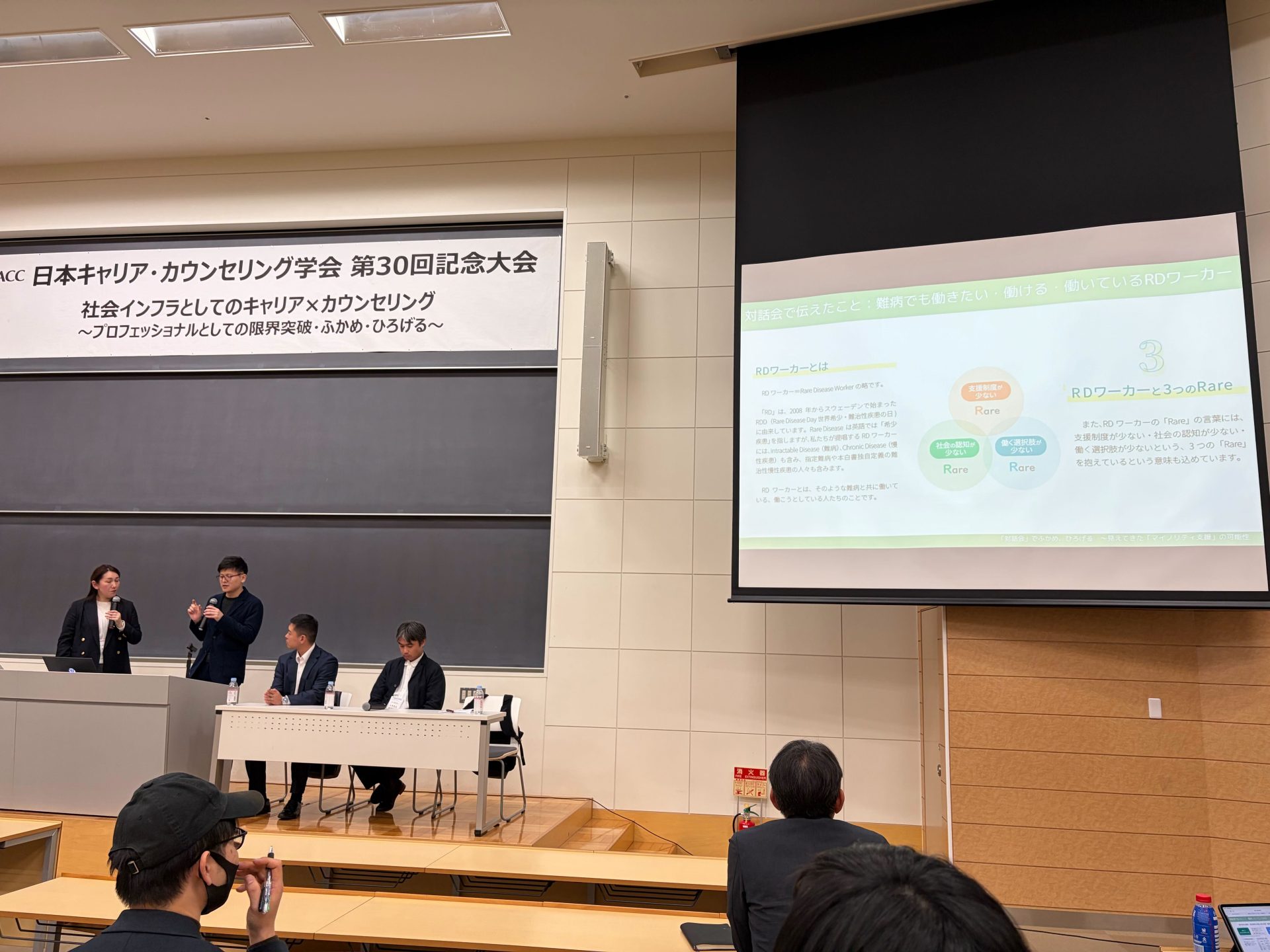 11月22日と23日に帝京平成大学池袋キャンパスで開催された「日本キャリア・カウンセリング学会第30回記念大会」にて、両育わーるどのメンバーが2つのセッションに登壇しました!キャリア支援にさまざまな立場で関わる方々に、RDワーカーの可能性についてお伝えし、RDワーカーが活躍できる場の共創に向けて呼びかけることができました。